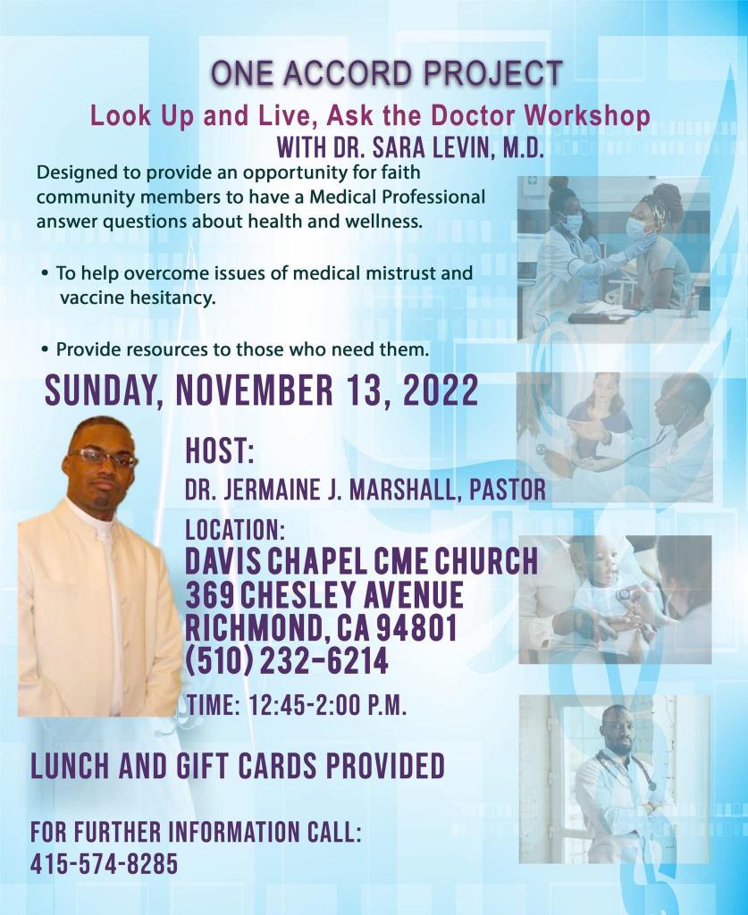 To combat misinformation, he’s been meeting virtually with about 30 other Black pastors once a month in calls organized by the One Accord Project, a nonprofit that organizes Black churches in the San Francisco Bay Area around nonpartisan issues like voter registration and low-income housing. Throughout the pandemic, the calls have focused on connecting pastors with public health officials and epidemiologists to make sure they have the most up-to-date information to pass on to their members, said founder Sabrina Saunders.